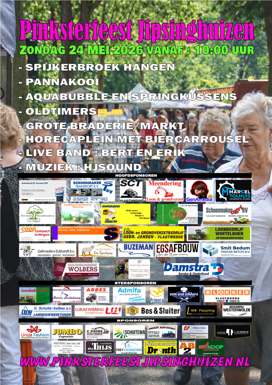 JIPSINGHUIZEN - Nadat vorig jaar het Pinksterfeest in Jipsinghuizen niet door kon gaan door extreme regenbuien hopen we dit jaar op een droge en gezellige editie van het Pinksterfeest in Jipsinghuizen. Dit jaar is er weer een prachtig programma voor jullie samengesteld